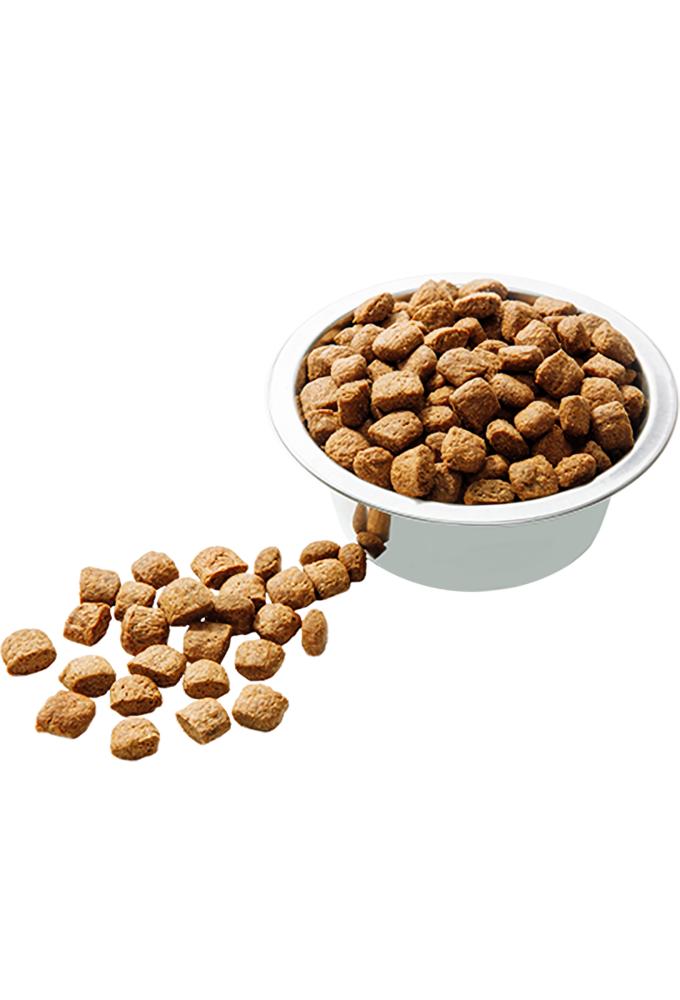 Екструдовані злакові вищого ґатунку. Пшениця, кукурудза та бурий нешліфований рис, харчові волокна бурякового жому та пшеничних висівок є запорукою покращеного травлення, профілактикою метеоризмів, формування малої кількості та оптимальної консистенції стулу.