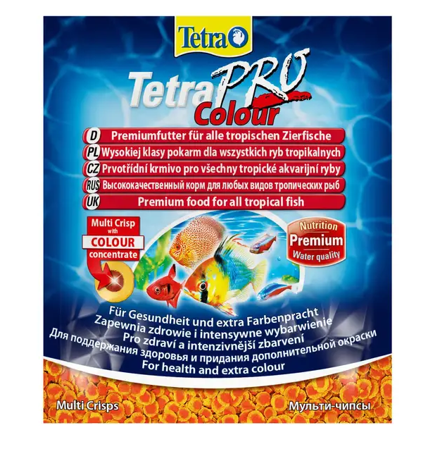 Щоб ваші акваріумні рибки були яскравими та гарними, обов’язково потрібно підбирати корм, який є не тільки поживним і корисним, але й може впливати на загальне забарвлення риб. Саме таким є Tetra PRO Colour – універсальний корм у вигляді чипсів для акваріумних рибок, який у своєму складі містить спеціальні речовини, що сприяють яскравості риб.