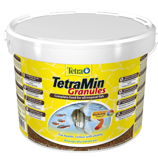 Корм Tetra MIN Gran містить повний спектр поживних речовин, він дуже корисний та гарно впливає на стан рибок. Додатково містить лецитин та вітаміни, які здатні вливати на яскравість забарвлення риб.