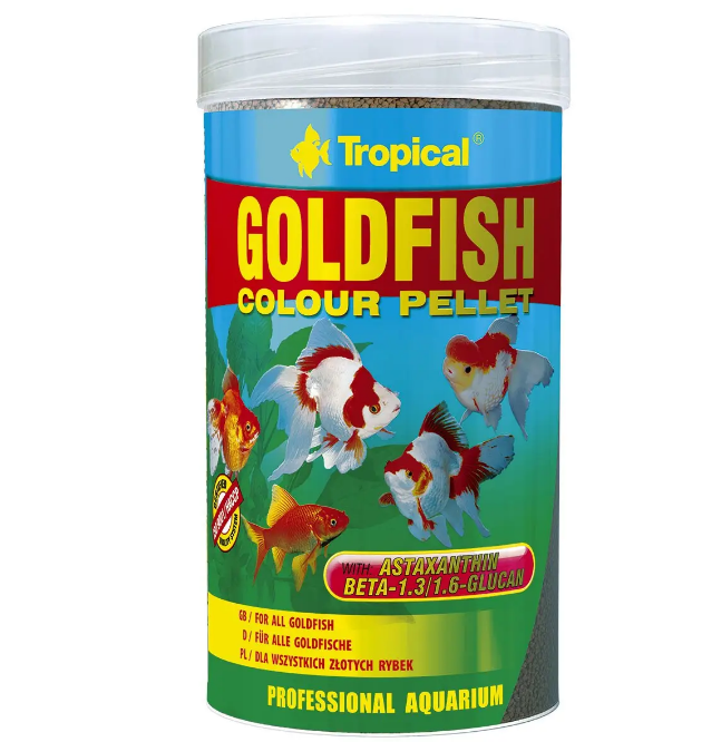 Основний фарбувальний корм у вигляді дрібних плаваючихгранул, призначений для щоденного годування всіх видів золотих рибок і молодих коропів коі, які живуть як в акваріумах, так і в ставках.
