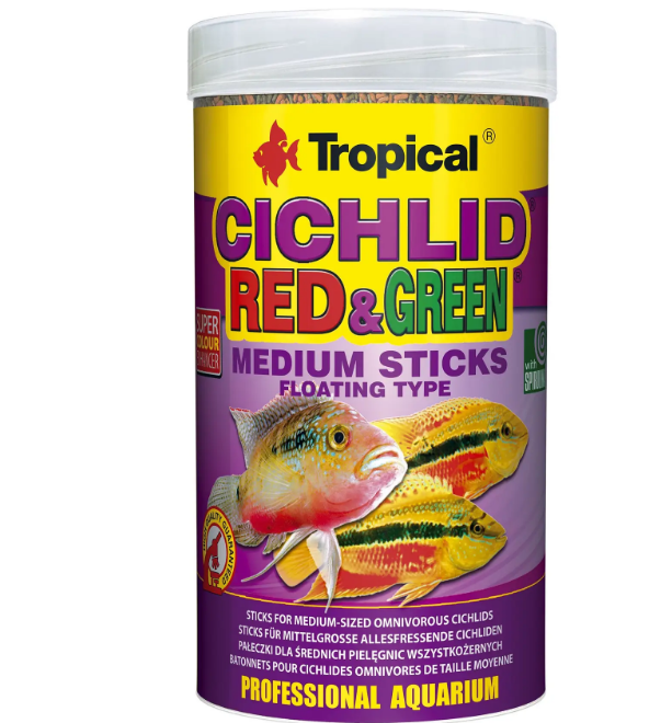 Багатокомпонентний основний корм у вигляді плаваючих паличок для щоденного годування всеїдних цихлід середнього розміру. Палички Cichlid Red & Green Medium Sticks є також чудовим доповненням дієти рослиноїдних цихлід.