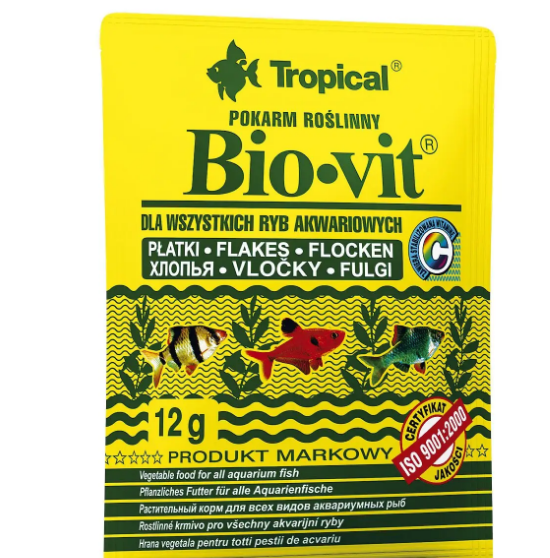 Сухий корм для акваріумних риб Тропікал Tropical Bio-Vit для травоїдних риб (пластівці), 12 г