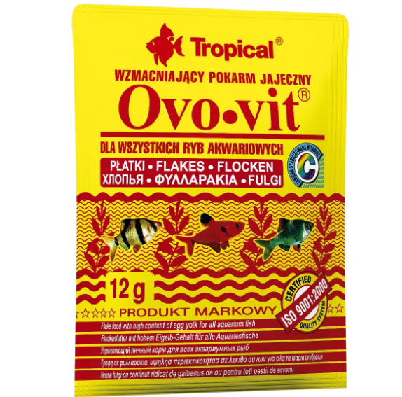Тому Ovo-Vit є незамінним доповненням дієти риб, які нерестяться, підростаючих мальків і молодих риб. Його високу живильну цінність можна використовувати також в період одужання, коли риби потребують особливої турботи та високоенергетичних, легко перетравлюваних кормах. Вміщені в кормі яєчні жовтки це не тільки джерело цінного лецитину, але і ненасичених жирових кислот, а також натуральних барвників з групи каротиноїдів, які інтенсифікують забарвлення риб.