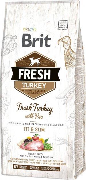 Сухий корм для літніх собак Бріт Brit Fresh Light Light Fit & Slim з індичкою та горошком, 12 кг
