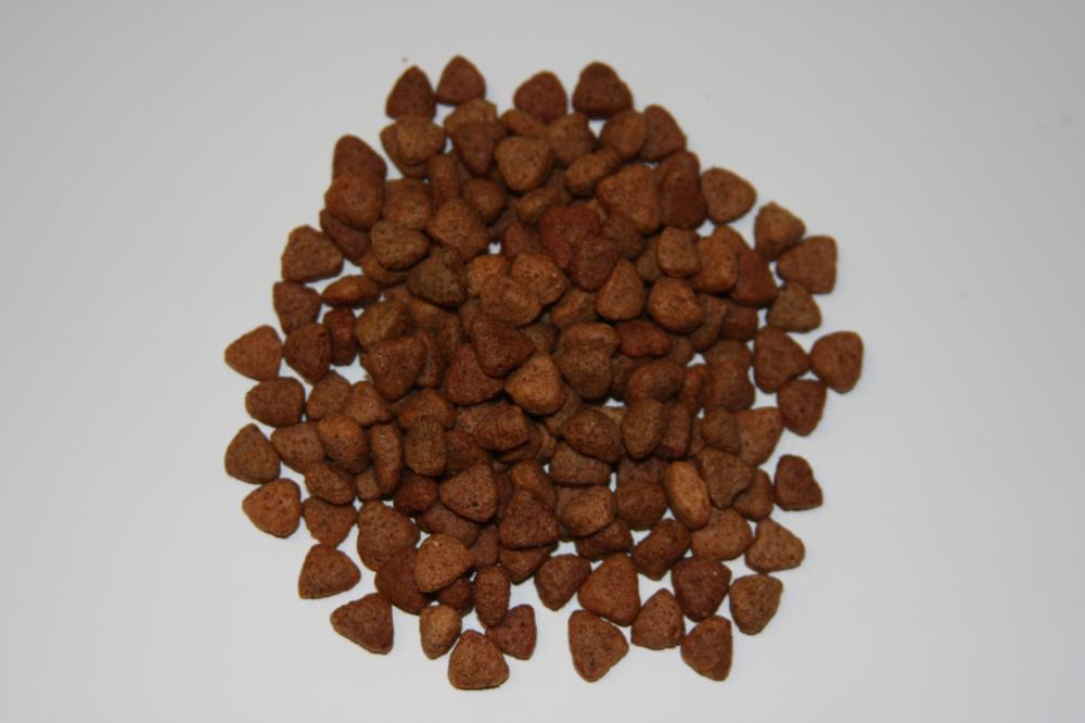 Склад корму для кішок: протеїн — 27%, жир — 13%, клітковина — 3%, волога — 8%, зола — 6%, кальцій — 1,1%, фосфор — 0,9%, натрій — 0,8%, магній — 0,08%, цинк — 150 мг/кг, залізо — 300 мг/кг, мідь — 15 мг/кг, таурин — 500 мг/кг, вітамін А — 7000 МО/кг, вітамін Д3 — 1500 МО/кг, вітамін Е — 300 МО/кг.