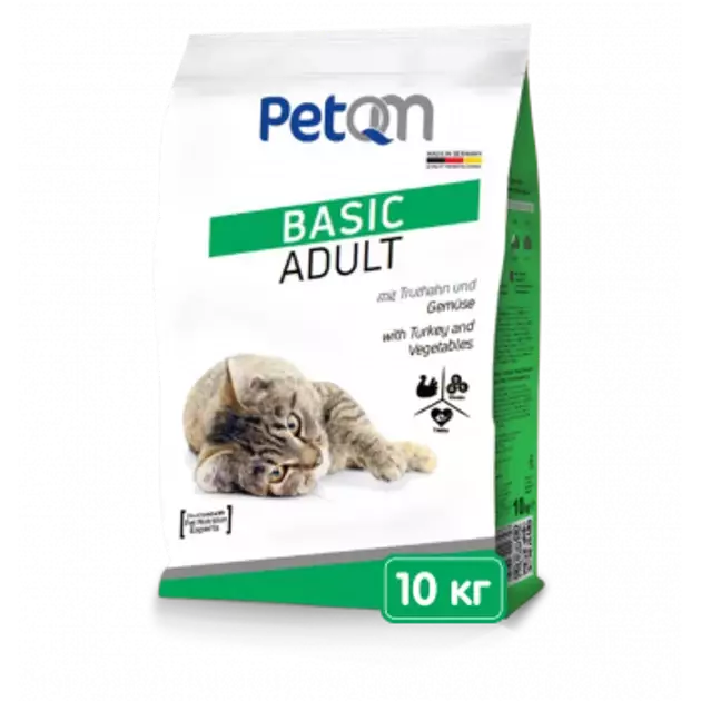 Сухий корм PetQM Cat Basic Adult with Turkey and Vegetables з індичкою та овочами - це збалансований раціон повнораціонний, який був спеціально розроблений для дорослих кішок.