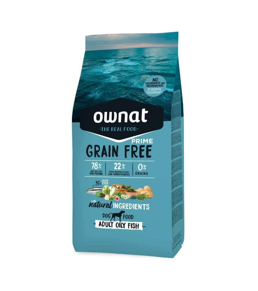 Ownat Grain Free - повнораціонний корм, розроблений для собак усіх порід. Містить 35% свіжої жирної риби, яка є джерелом високоякісних білків та має неперевершений смак і високий вміст омега-3, що сприяє здоров’ю шкіри та робить шерсть блискучою.