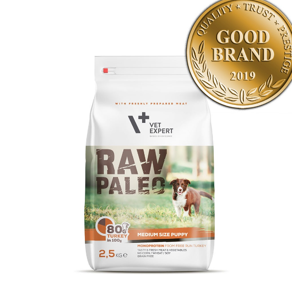 Сухий корм для цуценят Vet Expert Raw Paleo Puppy Medium Turkey з індичкою, 2.5 кг