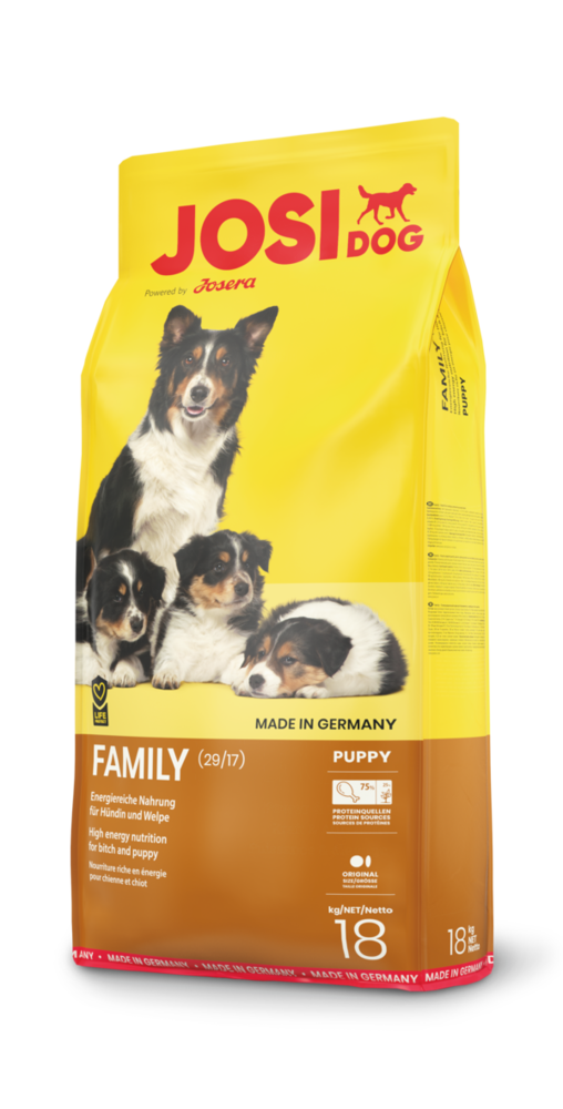 JOSERA JosiDog Family це особливий корм, з невеликою формою крокет, для сук та їхніх цуценят. Особлива безглютенова формула, з найкращими поживними речовинами, сприяє збалансованій дієті та здоровому розвитку цуценят.