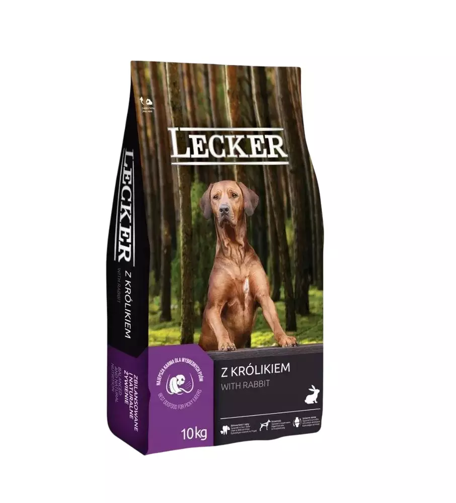 Повнораціонний преміум корм для дорослих собак усіх порід Lecker з м’ясом кролика 10 кг. Не містить жиру та м'яса птиці. Оптимально збалансований за поживними речовинами корм - це корисна і смачна їжа для вашої собаки!