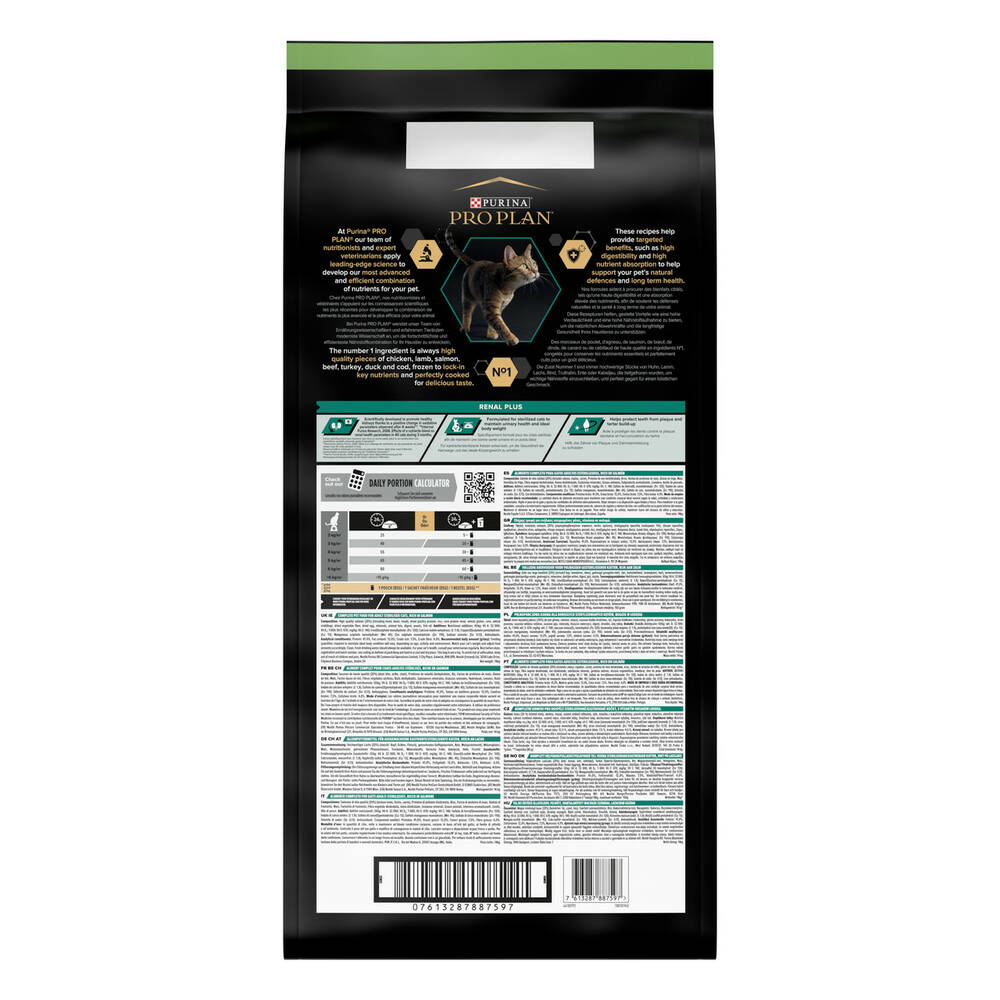Purina Pro Plan Sterilised Adult Renal Plus для дорослих котів після стерилізації з лососем. Сухий повнораціонний корм для стерилізованих котів. Сприяє нормальному функціонуванню нирок*, підтримує оптимальної вагу тіла у стерилізованих котів. Корм спеціально розроблений для підтримки здоров’я нирок завдяки позитивним змінам окислювальних параметрів, які спостерігаються через 6 тижнів вживання корму.