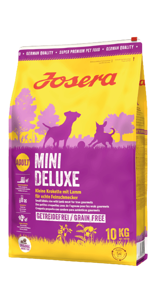 JOSERA MiniDeluxe цей корм пропонує нашим маленьким шибеникам смачну та водночас дуже добре перетравну їжу без зернових, замість цього з овочами, травами та плодами і великою кількістю м’яса ягня.