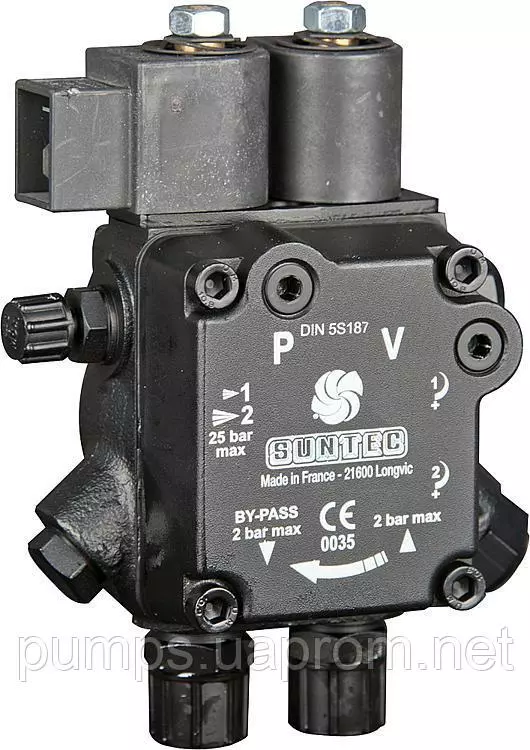 Рідкопаливний шестереньчастий насос AT2 характеризується двома режимами тиску. Має відсіковий електромагнітний клапан у лінії з функцією замикання. Перемикання між низьким і високим тиском забезпечується другим вбудованим електромагнітним клапаном.
