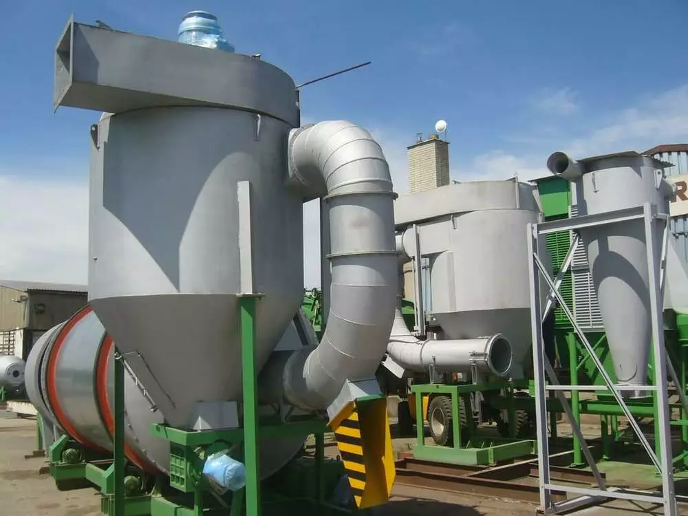Після сушіння матеріал надходить у циклон, де відокремлюються сухі частинки, а повітря очищується від залишків пилу.