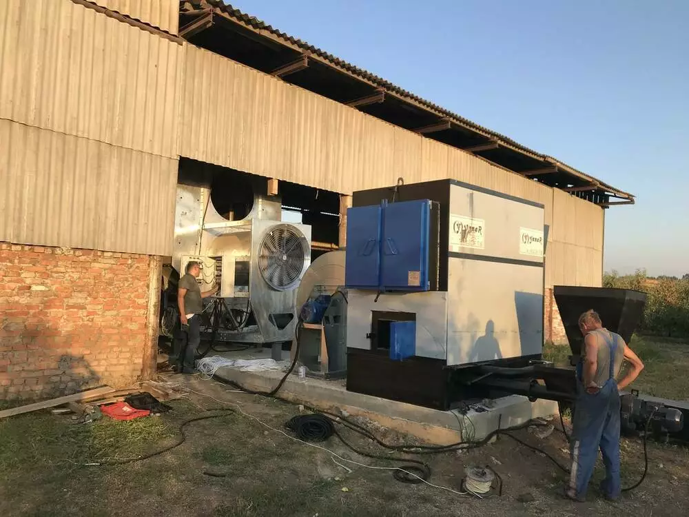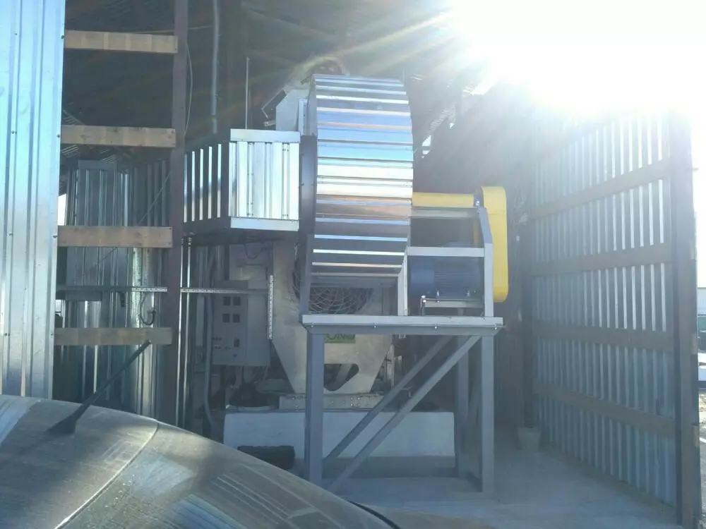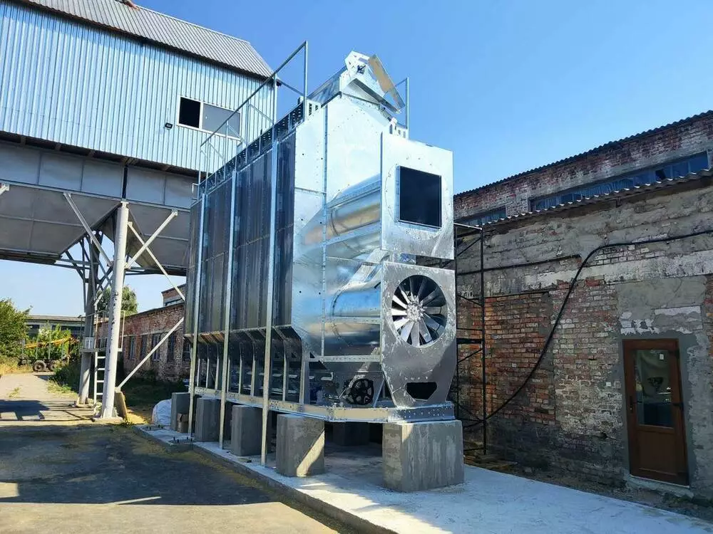 • Вентилятори теплогенератора нагнітають в теплообмінник потік повітря з довкілля і далі нагріте повітря прямує в зерносушарку.