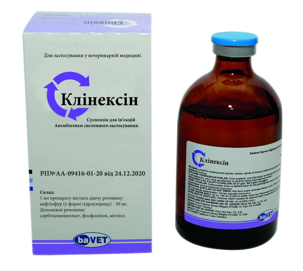 Клінексін - суспензія для ін’єкцій (антибіотик системного застосування).