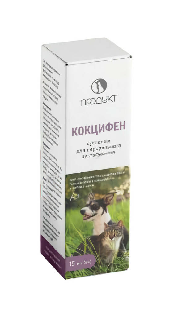 Суспензія Кокцифен для профілактики та лікування гельмінтозів та кокцидіозів у собак і котів 15 мл, Продукт