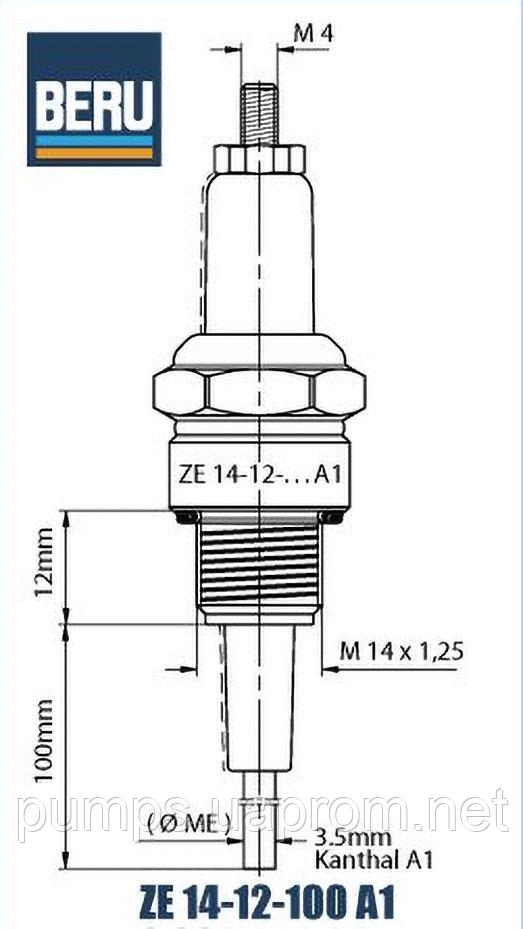 Свіча ( електрод, зонд ) Beru ZE 14-12-100 A1