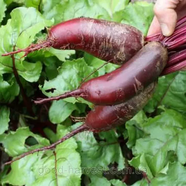 Корнеплоды цилиндрические, длиной 12-20 см и диаметром 7-9 см, темно-красные, без колец.
