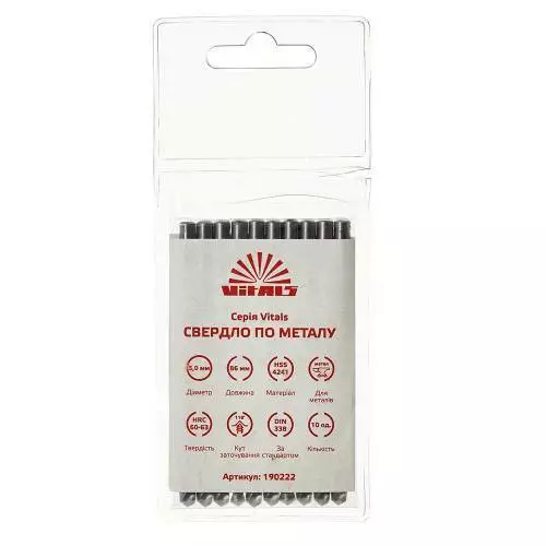 Свердло по металлу HSS 5.0 Vitals — це незамінний інструмент для точного та ефективного свердління металів, що забезпечує високу продуктивність і довговічність роботи.