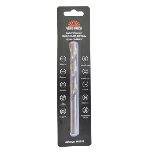Свердло по металу HSS-Co/M35 10.0 (1 од.) Vitals Professional - це високоякісний інструмент, розроблений для свердління отворів у найтвердіших і жаростійких металевих матеріалах. Виготовлене зі спеціальної сталі HSS-Co/M35 (аналог P6M5K5), яка містить 5% кобальту для підвищення твердості, зносостійкості і термостабільності.