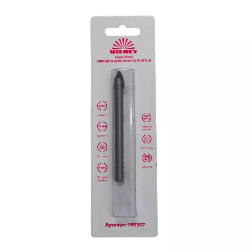 Особливості свердла пікоподібного по склу та плитці 8 мм Vitals: