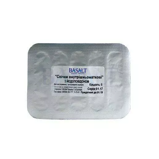 Свічки внутрішньоматкові з йодоповідоном №5 Базальт