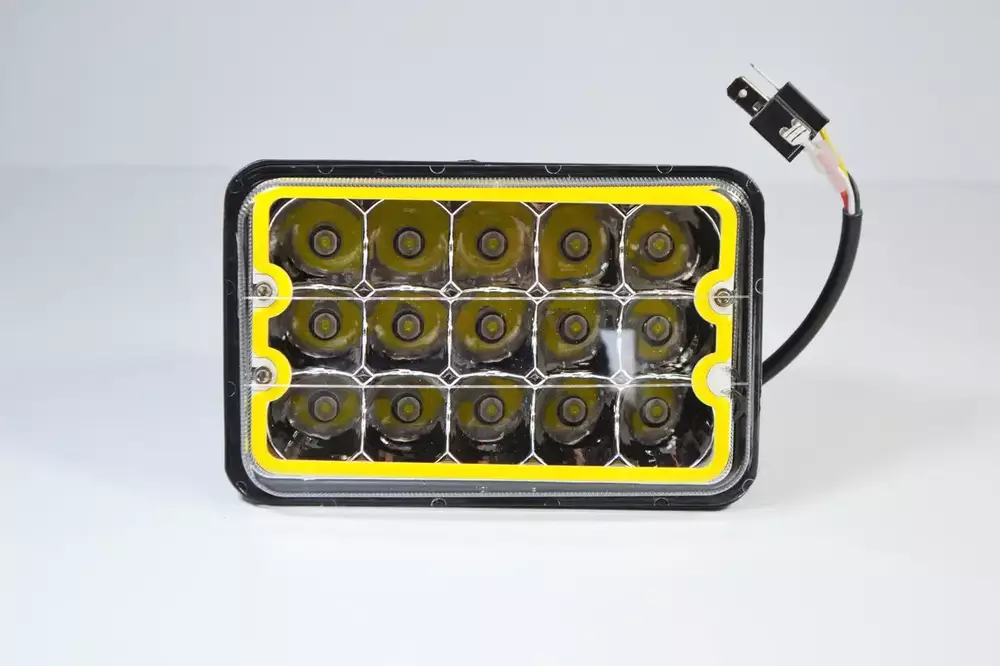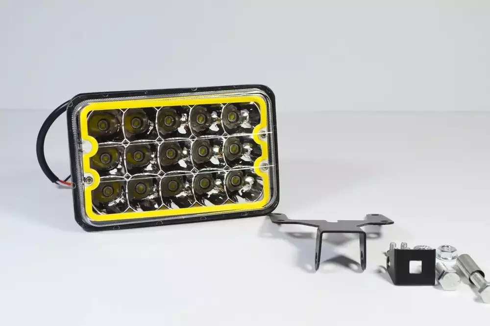 Світлодіодна LED-фара 45 Вт прямокутна з ангельським оком 45W, 15 ламп, дальній і ближній промінь 10/30