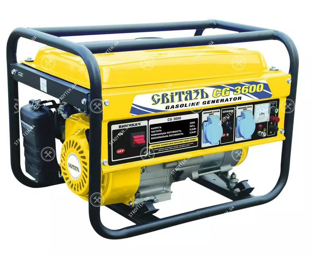 Свитязь CG3600 Электрогенератор Производитель Свитязь Страна происхождения Китай Гарантия 1 год Тип питания Бензин Тип старта Ручной Тактность двигателя Четырехтактный Объем двигателя 196 см3 Номинальная мощность 2.5 кВт Максимальная мощность 2.8 кВт Наличие автоматики Нет Выходное напряжение 220В Частота 50 Гц Количество фаз 1 (одна) Тип выходного тока (напряжения) Переменный ток Тип преобразования Прямое преобразование Топливный бак 15 л Масляный бак 0.6 л Расход топлива 550 гр/кВт*час Охлаждение Воздушное Длительность работы 11 ч Уровень шума 67 дБ Габариты 605х445х450 мм Вес 40 кг Дополнительно Модель двигателя: TE-200 Комплектация - Электрогенератор
