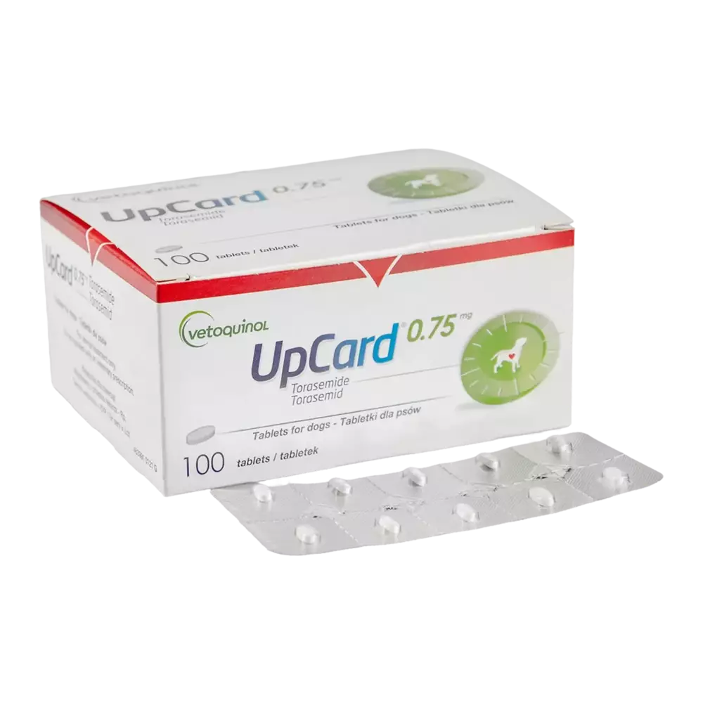 Лікарська форма: таблетки для перорального застосування Якісний склад і кількісний склад діючих речовин і якісний склад допоміжних речовин: випускають в трьох модифікаціях: з вмістом торасеміду 0,75 мг, 3 мг і 7,5 мг. В якості допоміжних речовин АпКард містить лактози моногідрат, повідон, кросповідон, лаурилсульфат натрію, мікрокристалічна целюлоза, стеарилфумарат натрію і ароматизатор «бекон». дозування: 0,75 мг; 3 мг; 7,5 мг Показання до застосування препарату АПКАРД В якості діуретичного засобу для купірування клінічних ознак, пов'язаних із застійною серцевою недостатністю у собак. Побічні ефекти Може виникати блювота і діарея Протипоказання до застосування препарату АПКАРД Протипоказано застосовувати тваринам при нирковій недостатності, вираженому зневодненні, гіповолемії або гіпотензії, а також при підвищеній індивідуальній чутливості до лікарського препарату або його компонентів.