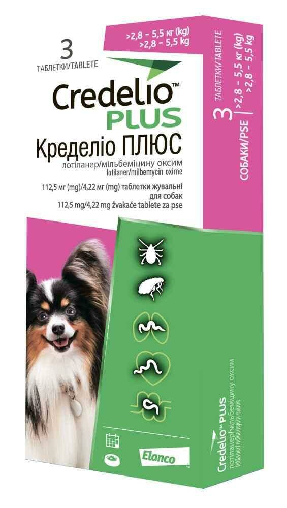 Таблетки Credelio Plus (Кределіо Плюс) Dog Tab від бліх та кліщів для собак 2.8 - 5.5 кг