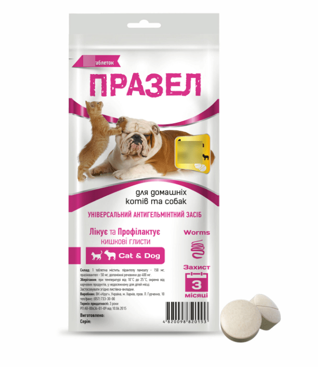 Таблетки Празел - ефективний антигельмінтний препарат. Об'єднує властивості діючих речовин, які входять до його складу. Володіє широким спектром антигельмінтної дії проти зрілих і личинкових форм круглих (нематод) і стрічкових (цистод) гельмінтів у собак і котів.
