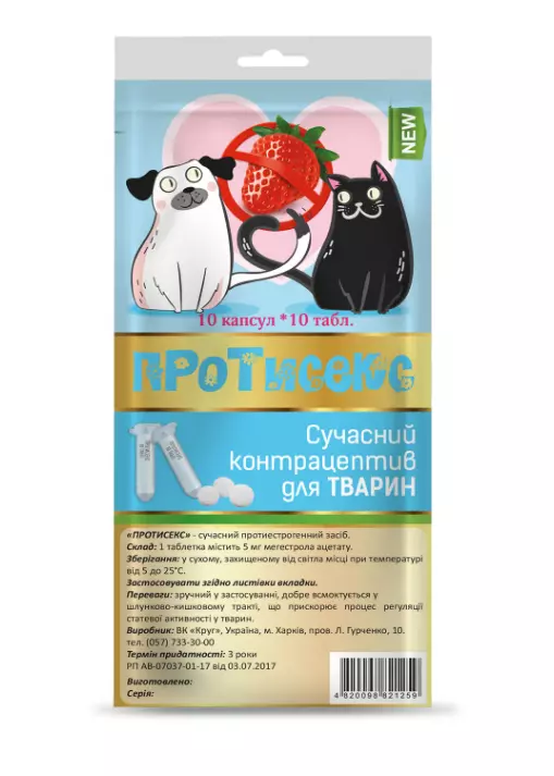 Таблетки "Протисекс" для котів і собак №100 (Круг)