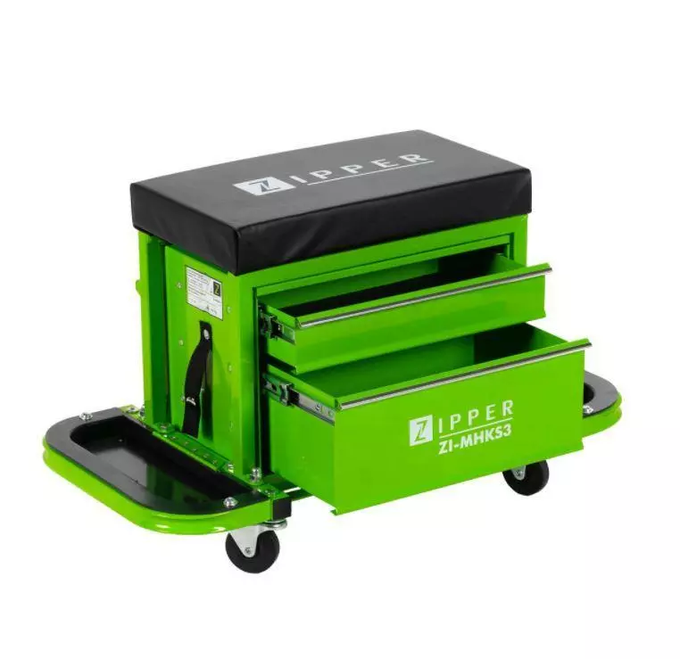 4 колеса (диаметр 63,5 мм)Два ящикаМаленький: 320 x 195 x 60 мм, максимальная нагрузка 10 кг;Большой 320 x 195 x 135 мм макс. нагрузка 20 кгСиденье 410 x 230 ммДержатель инструмента с максимальной нагрузкой 10 кгДве боковые полки с максимальной нагрузкой 5 кг каждая, которые можно сложитьБезналичный расчёт