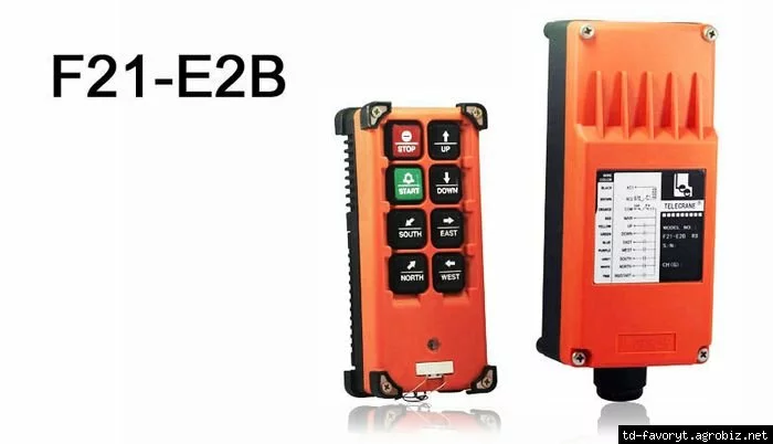 Модель TELECRANE F21-E2B промышленное дистанционное управляющая система предназначенная в основном для управления мостовыми кранами или кран-балкой отечественного или импортного производства, модель F21-E2B имеет прочный, удобный и надежный корпус, пригодный для использования с односкоросными электродвигателями в движений (вверх/вниз), (вправо/влево), (вперед/назад).