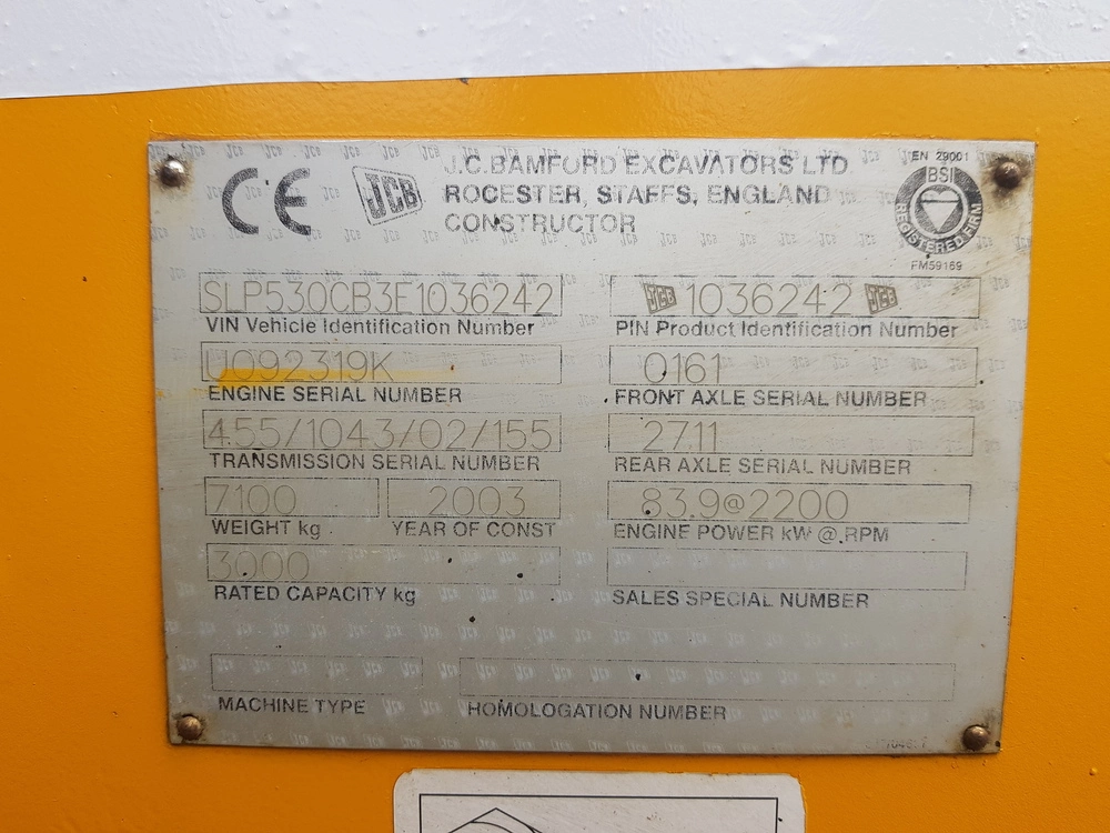 Телескопічний навантажувач JCB 530-70 з коніціонером, 2003 року випуску. У відмінному стані, після передпродажної підготовки, без пробігу Україною. У комплекті: вила та ківш 2,8 м³.