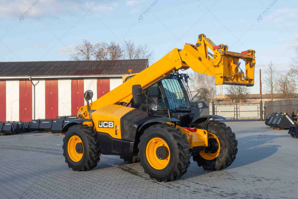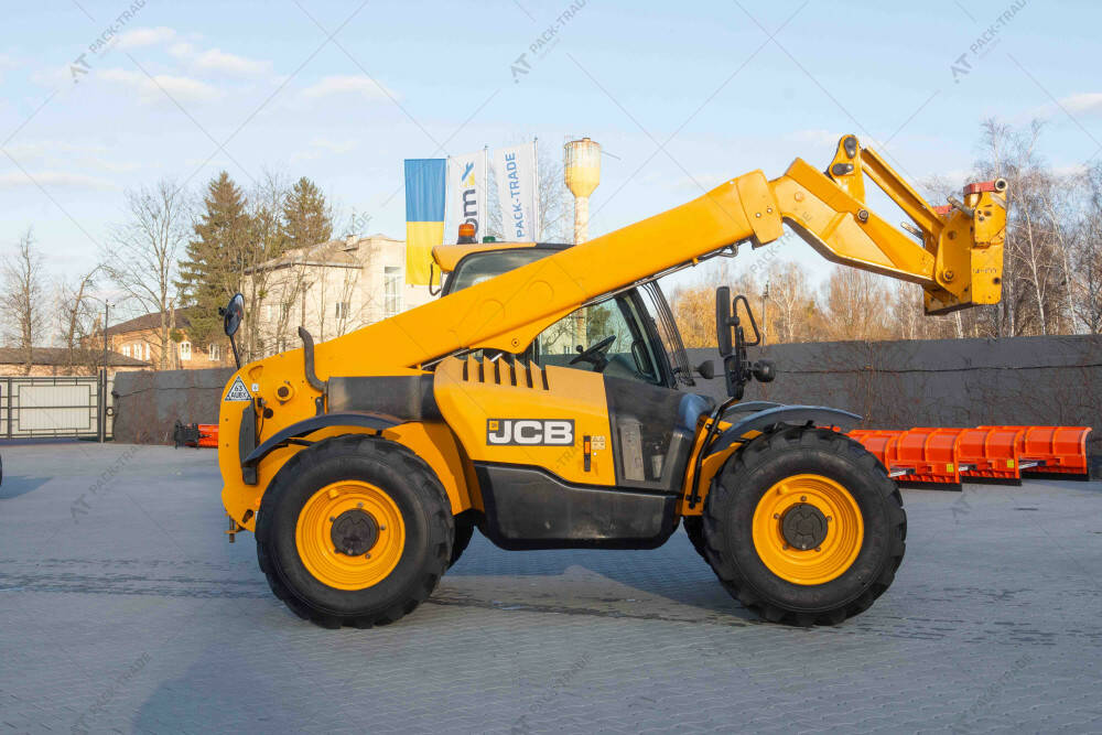 Навантажувач б/в JCB 531-70, 2018 р/в, з напрацюванням 3092 м/год. Двигун – 55 кВт Turbo. Вантажопідйомність – 3100 кг. Висота підйому – 7 м. Шини – 400/80-24. Додаткове робоче освітлення спереду. Захист лобового скла. Нижній захист КПП та карданів.