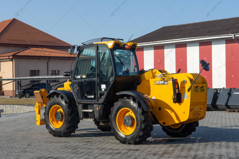 Навантажувач б/в JCB 535-125 Hi-Viz, 2017 р/в, з напрацюванням 4927,1 м/год. Двигун 55 кВт Turbo. Вантажопідйомність 3500 кг. Висота підйому 12.5 м. Габаритна висота навантажувача 2,5 м. Шини 15,5/80-24. Кондиціонер. Sway, захист лобового скла, додаткове переднє робоче світло, нижній захист кпп та карданів, захист розподільника.