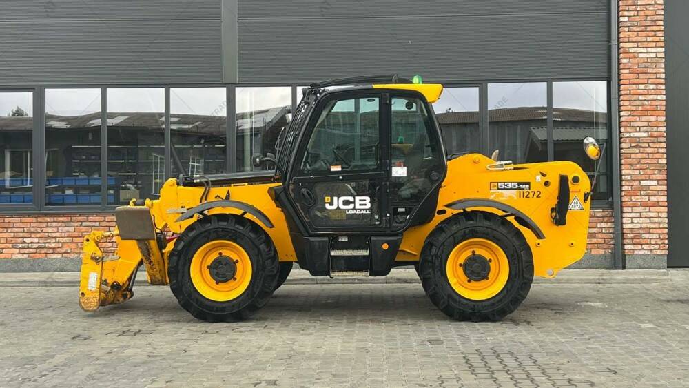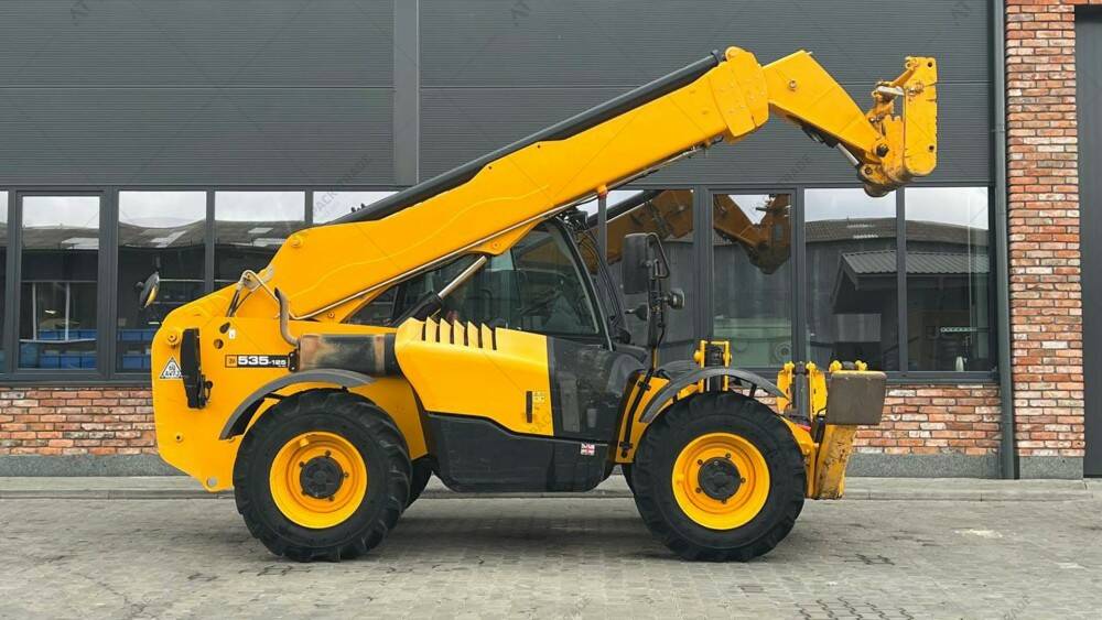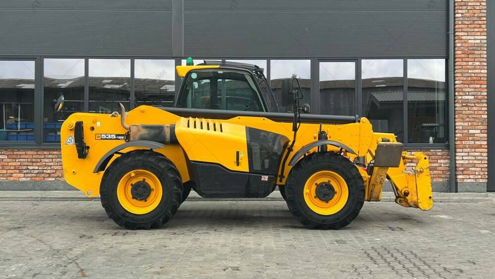 Навантажувач б/в JCB 535-125, 2019 р/в, з напрацюванням 5959 м/год. Вантажопідйомність – 3500 кг. Висота підйому – 12,5 м. Кондиціонер. Важелі. Sway. Гума – 15.5/80-24. Додаткове робоче освітлення спереду та ззаду. Захист лобового скла та даху кабіни. Нижній захист КПП та карданів. Захист розподільника.