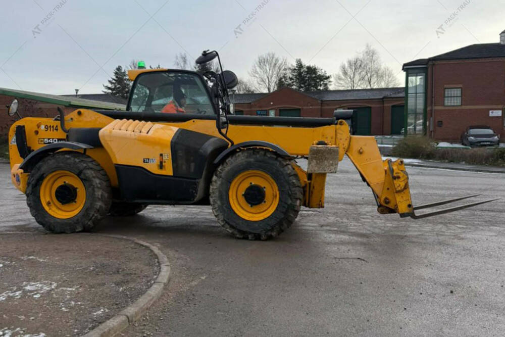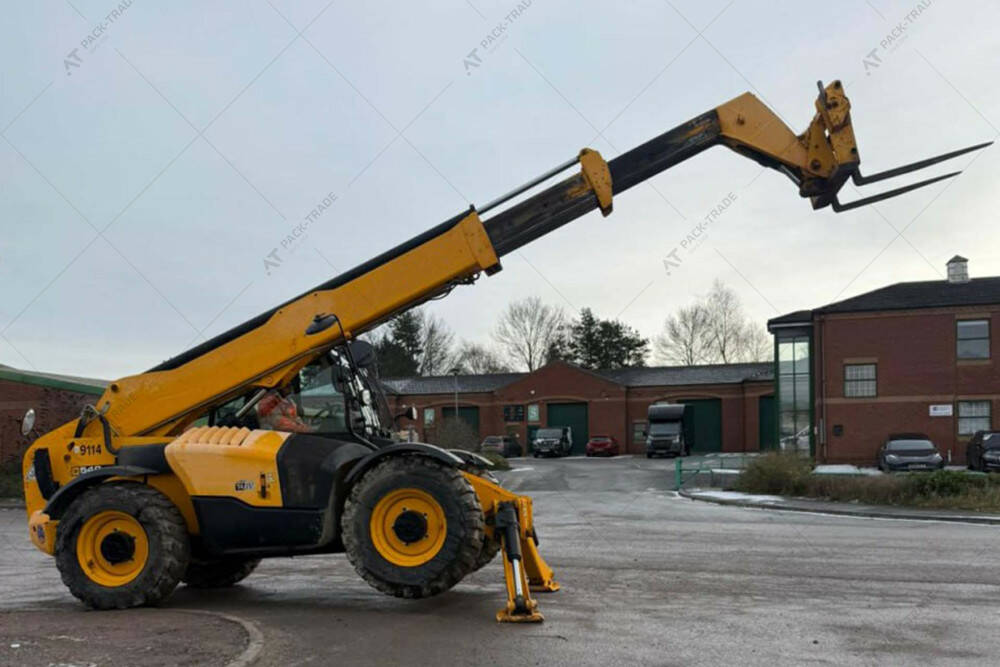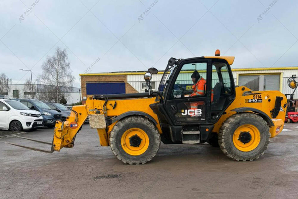 Навантажувач б/в JCB 540-140, 2017 р/в, з напрацюванням 3018 м/год. Двигун – 55 кВт. Вантажопідйомність – 4000 кг. Висота підйому – 14 м.
