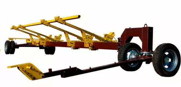 Тележка двухосная ВТЖ предпочтительна для транспортировки жаток небольшой ширины захвата (от 6 до 7,6 м). Ее преимущество – надежность и легкая конструкция.