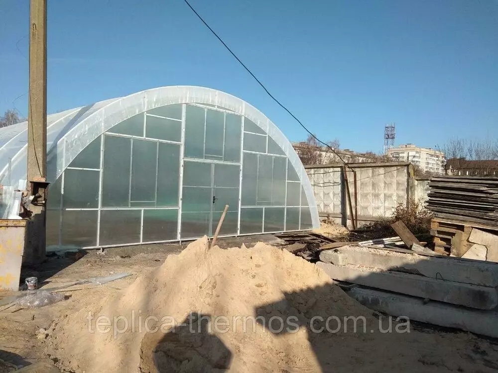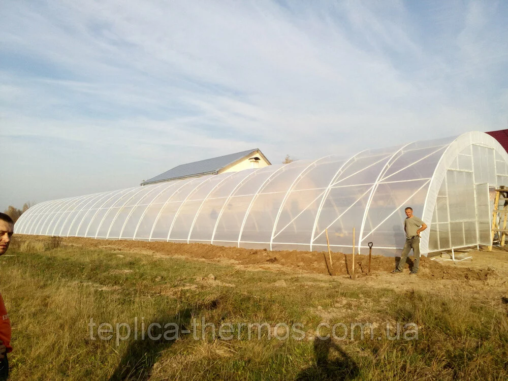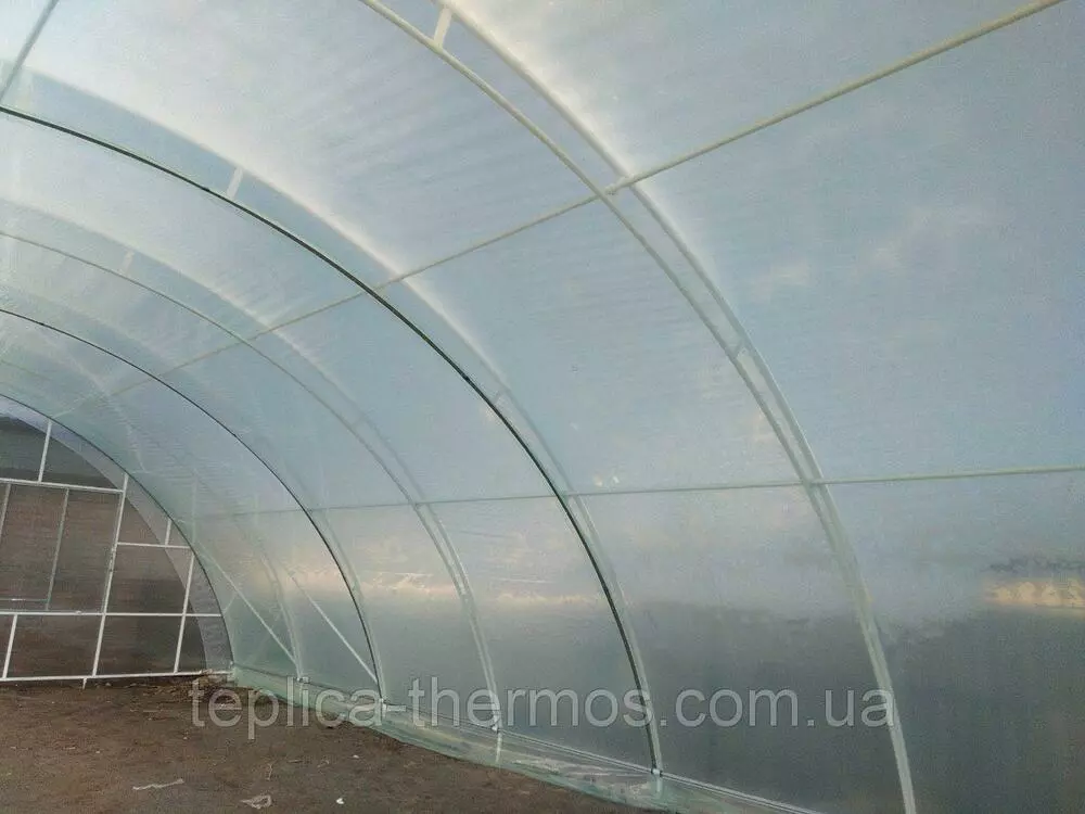 Покриття здійснюється багатосезонною плівкою (виробник Греція) із зовнішньої та внутрішньої сторони ферм, у такий спосіб відбувається ефект "термос".