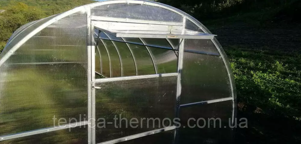 У наявності дверний отвір із форточкою, так само є форточка на іншому кінці теплиці.