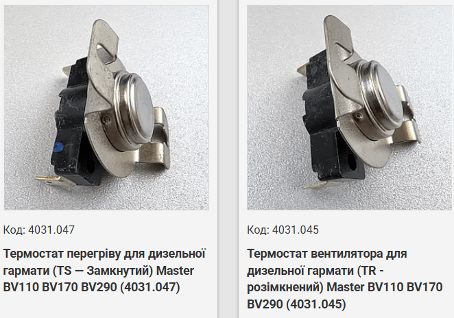 На сайті представлені запчастини для теплового обладнання Master. Якщо потрібної Вам запасної частини немає на нашому складі, то термін постачання після оформлення замовлення становить від 15 до 60 днів за умови 100% оплати.