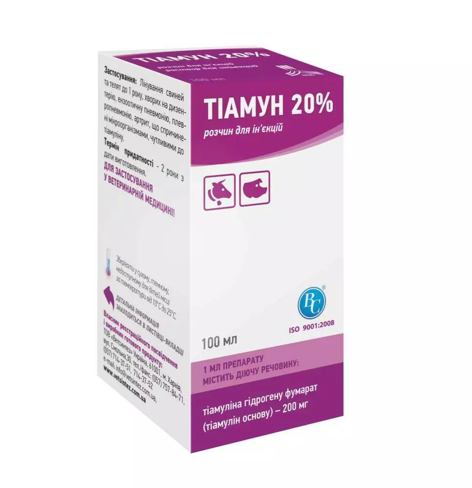Тіамун 20% для свиней і телят до 1 року 100 мл, Ветсинтез