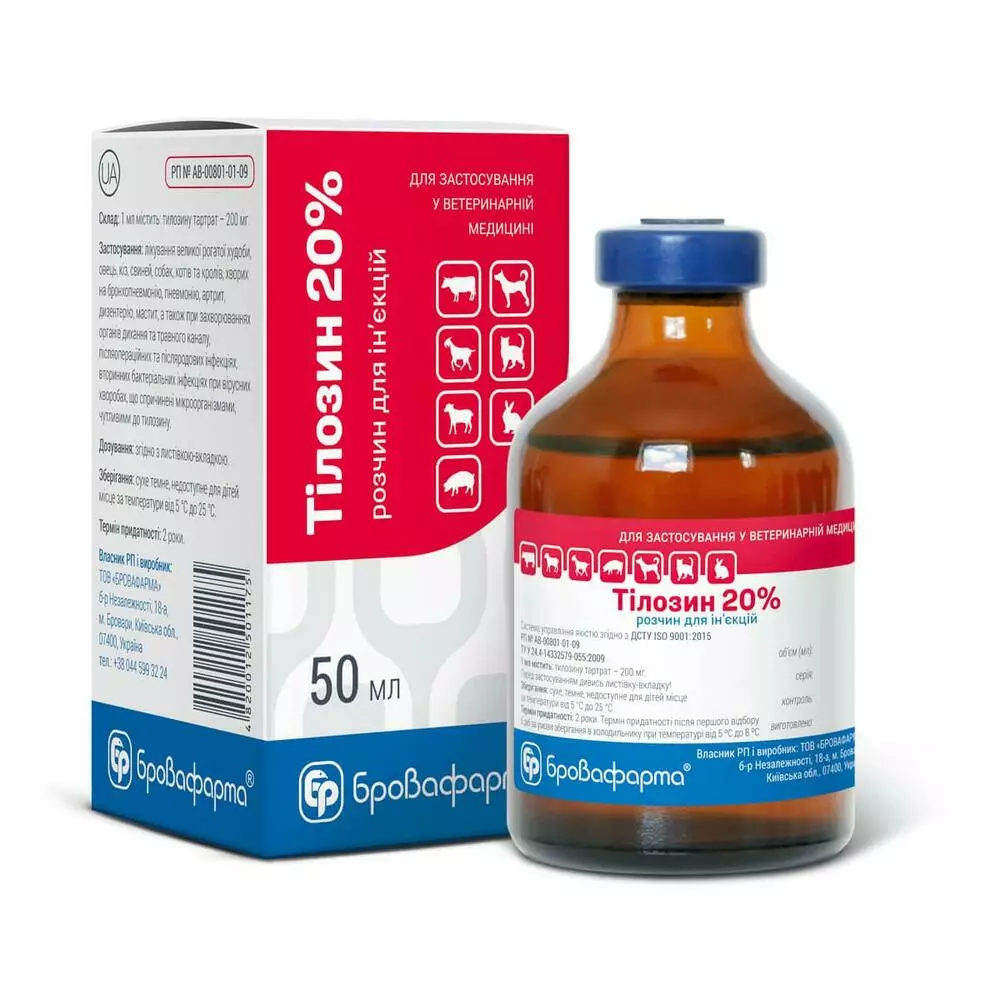 Тилозин розчин 20% - ефективний, якісний вітчизняний препарат для широкого застосування в ветеринарії. Може застосовуватися для лікування домашніх тварин, зокрема собак і кішок. При виробництві препарату були використані науково-дослідні роботи впливу компонентів продукту на здоров'я тварин і на підставі результатів досліджень створено високоякісний, безпечний і ефективний ветеринарний препарат.