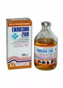 1 мл препарата содержит действующее вещество: тилозина тартрат – 200 мг. Показания Лечение животных (крупный рогатый скот, овцы, козы, свиньи, собаки, коты, кроли) при бронхопневмонии, пневмонии, артрите, дизентерии, мастите и некоторых иных острых и хронических патологиях, вызванных чувствительными к тилозину возбудителями. Лечение послеоперационных и послеродовых инфекций, вторичных бактериальных инфекций при вирусных болезнях, а также смешанных бактериальных инфекций (дыхательных путей, желудочно-кишечного тракта). Дозы и способ применения вводят животным только внутримышечно один раз в сутки в течение 3 – 5 дней в следующих дозах: крупному рогатому скоту — 2 - 5мл на 100 кг веса животного, свиньям —0,5 мл на 10 кг веса животного, овцам, козам - 2,5 мл на 50 кг, собакам и кошкам — 0,5мл на 10 кг веса животного. При повторном применении необходимо менять место инъекции. Не вводить в одно место: взрослому крупному рогатому скоту – более 20 мл; телятам, овцам, козам – 10-15 мл; поросятам, свиньям – 5-10 мл. Если необходимая доза превышает рекомендуемую, ее делят и вводят в разных местах. Противопоказания Повышенная индивидуальная чувствительность к препарату.