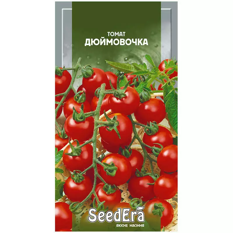 Томат Дюймовочка - це ранньостиглий сорт для вирощування у теплицях. Рослина індетермінантна, потребує опори. Плоди округлі, гладкі, червоні, не великі, масою 15-20 г. Період від сходів до початку плодоношення 90-95 днів.Сорт цінується за стійкість до нематоди та чудові смакові якості. Споживають у свіжому вигляді.