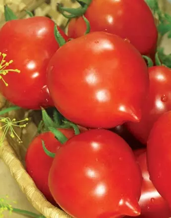 Сорт середнього терміну дозрівання висотою 1,5-2м. Плоди круглі з "носиком", масою 100-110гр, червоні, зібрані в китиці. Сорт універсального призначення хороший у свіжому вигляді, консервації, придатний для приготування соків. Відрізняється стійкістю до фітофторозу.