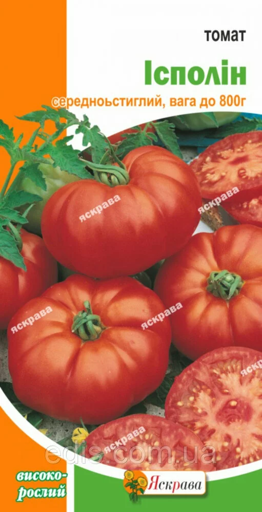 Томат Велетень 0,1 гСередньостиглий сорт. Вегетаційний період від сходів до стиглості 110-120 днів. Кущ сильнорослий, висотою 150-180 см. Плоди округло-плоскої форми, червоного кольору, масою 300-800 г, м'ясисті, ароматні, відмінних смакових якостей. Сорт цінується за високу врожайність і велику плодючість. Плоди використовують для споживання у свіжому вигляді та переробки.